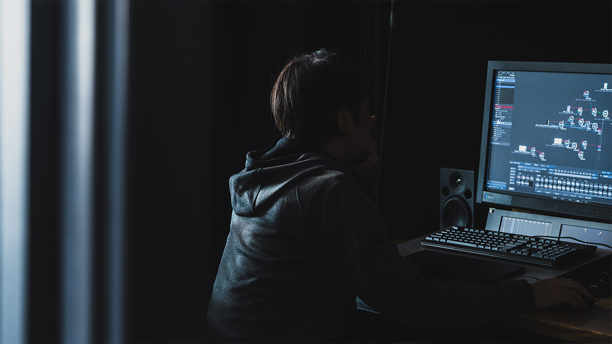 テクニカルアーティスト:異なるソフトウェア間のやり取りやデザイナーの技術的補助、作品のCG/VFXのワークフロー構築を行う作業です。